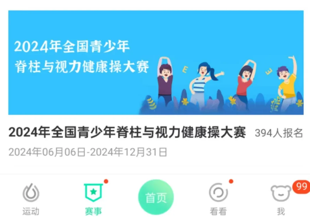 悦动圈APP-赛事-主题赛事-2024全国青少年脊柱与视力健康操大赛。